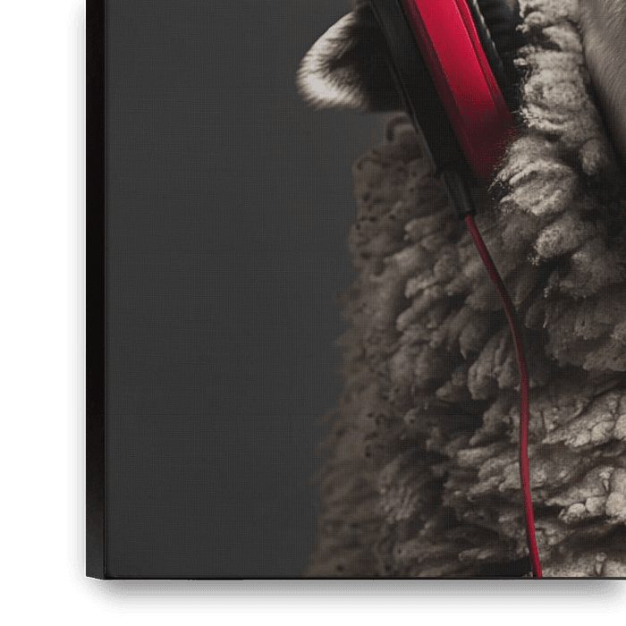 Koop dit digital art kunstwerk Schaap met koptelefoon van YArt als reproductie op canvas, aluminium dibond, (ingelijste) fotoprint, behang en ArtFrame, op maat geprint in Fine-Art kwaliteit.