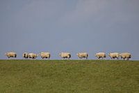 Ik zat op een afstand naar de dijk te kijken. De schapen stonden er in een groepje en er kwamen er steeds meer bij. Tot 1 schaap het voortouw nam en weg liep. En een voor een volgeden de rest. Dit gaf zo'n grappig beeld.