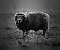 een stoere texelaar in de weide, dit schaap stond op wacht zodat de andere schapoen heerlijk konden rusten en grazen.