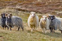 Een kudde schapen in een duinlandschap aan de Noordzeekust in Denemarken.