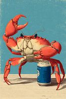 Met een koel biertje in zijn blikje en een ondeugende zwaai met zijn schaar nodigt deze krab je uit voor de ultieme after-work drink op het strand - want wie kan zo'n charmante barkeeper uit de zee weerstaan? Proost, zegt de krab, en nodigt alle landrotten uit voor een maritieme traktatie!