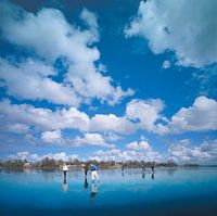 schaatsen, schaatsers, ijs, meer, wolken, wolkenlucht, spiegeling, reflectie