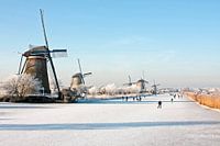Schaatsen bij Kinderdijk in de winter in Nederland