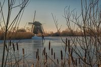 Schaatsen bij een molen aan een waterplas is een heerlijke winterse activiteit die het plezier van ijspret combineert met de serene schoonheid van het winterse landschap en de rustieke charme van de historische molen.