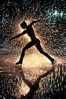 Een prachtig visueel kunstwerk waarin een silhouet van een schaatser opvalt tegen een explosie van licht. De dynamiek en elegantie van de beweging worden versterkt door de schitterende lichtstralen, wat het een unieke en krachtige compositie maakt. Perfect als decoratie voor moderne interieurs, waarbij het energie en beweging in de ruimte brengt. Het ontwerp is geschikt voor liefhebbers van sport, kunst en expressie.