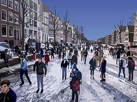 Het digitale kunstwerk “Schaatsplezier” toont een levendig tafereel van een winterse dag op de Amsterdamse grachten, onder een stralend blauwe, wolkeloze lucht. Deze moderne interpretatie van een schilderij van Hendrick Avercamp combineert klassieke sfeer met hedendaagse details. Het beeld is gevuld met schaatsende mensen van allerlei…