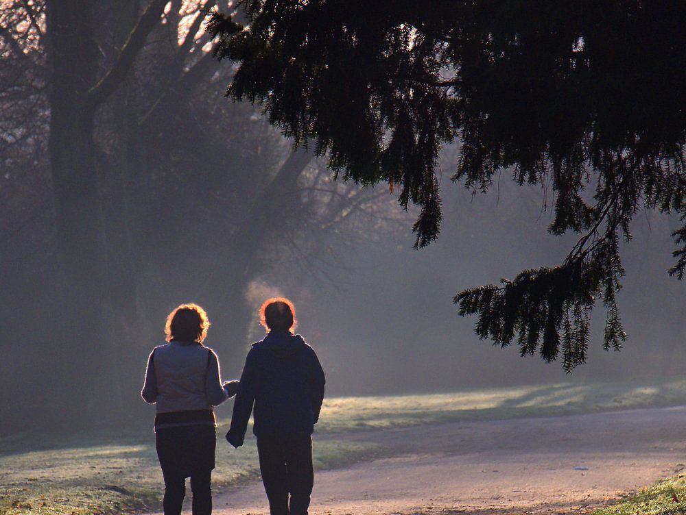 ochtendwandeling in de vroege ochtendmist