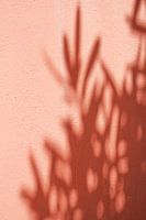 Op deze foto zijn schaduwen van olijf bladeren te zien op een koraal roze muur. Deze foto is gemaakt in het kleurrijke Villefranche sur Mér, Zuid-Frankrijk op een zonnige dag.