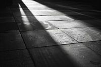 Deze fascinerende serie foto's toont de meesterlijke interactie van licht en schaduw op stedelijke bestrating. De beelden leggen de verschillende texturen en kleuren van het plaveisel vast, verlicht door zachte, binnenvallende zonnestralen. Deze artistieke afbeeldingen zijn ideaal voor liefhebbers van moderne fotografische kunst en stedelijkheid. Deze werken zijn perfect voor het decoreren van huizen, kantoren of galerieën en brengen een elegante en rustgevende esthetiek in elke ruimte.