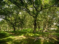 mooie zwart wit foto van de schaduw onder de bomen, de zon maakt een mooi schouwspel van de lichte plekken