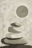 Schaduw van Zen is een minimalistisch kunstwerk dat rust en balans uitstraalt. Gestapelde vormen creëren een gevoel van stabiliteit, met een cirkel bovenaan die de compositie afrondt. Dit werk past goed in ruimtes waar eenvoud en harmonie gewenst zijn.