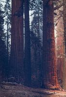 De opkomst van het warme ochtendlicht doet deze gigantische reuzen van het Sequoia-woud ontwaken uit hun diepe slaap en laat de koude mist geleidelijk verdwijnen.