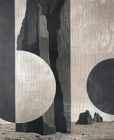 Dompel jezelf onder in de diepten van “Schaduwen van de Eeuwigheid”, een werk dat het ongrijpbare spel tussen licht en donker verkent. Dit werk, is een visuele symfonie van contrasten, texturen en vormen. Het werk heeft bevat een landschap dat zowel etherisch als tastbaar is.