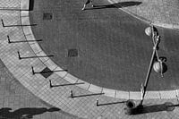 Het beeld werd voor mij extra spannend door juist niet de passanten vol in beeld te brengen, maar deze "mysterieus" aan de rand te zetten. Voor de kracht van de vormen en het patroon zette ik de foto…