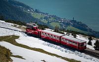 Een karakteristieke trein van de Schafbergbahn in Oostenrijk die de Schafberg op rijdt vanaf Sankt Wolfgang im Salzkammergut bij de Wolfgangsee.
