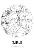 Zwart-witte landkaart, stratenplan of plattegrond van Schaijk. Schaijk is gelegen in de gemeente Landerd, provincie Noord-Brabant. Op de stadskaart zijn alle openbare wegen in Schaijk opgenomen. Verder is de kaart voorzien van de coördinaten van het centrum van Schaijk.