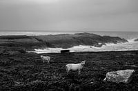 Schapen grazen rustig terwijl de branding van de Atlantische oceaan woest beukt tegen de kliffen bij Dun na mBo, in county Mayo in Ierland. Deze foto is gepubliceerd in het fotoboek PEAT van Bo Scheeringa