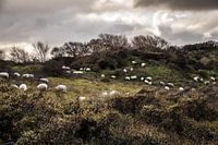 Schapen in de duinen met wolkenlucht