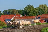 Schapen op dijk, Elsfleth; district Wesermarsch; Nedersaksen; Duitsland; Europa