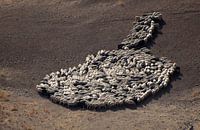 Schapen in de Sierra Gorda in Loja Andalusië Spanje. In de zomer vormen de schapen in deze hoogvlakte soms de meest vreemde en abstracte formaties op ter bescherming tegen aanvallers maar ook om zo een plek te maken waar het minder heet is. Ze staan allemaal met de kop naar beneden en krijgen zo meer verkoeling en schaduw van elkaar..Ik…