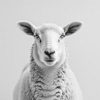 Deze zwart-wit foto van een schaap legt de zachte schoonheid en vredige uitdrukking van het dier vast. Het heldere, minimalistische beeld benadrukt perfect de zachte textuur van de vacht en de fijne details van het gezicht. Een charmant kunstwerk dat zowel natuurliefhebbers als liefhebbers van stijlvolle decoratie zal aanspreken.