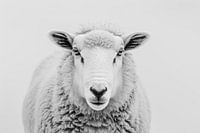 Deze zwart-wit foto van een schaap legt de zachte schoonheid en vredige uitdrukking van het dier vast. Het heldere, minimalistische beeld benadrukt perfect de zachte textuur van de vacht en de fijne details van het gezicht. Een charmant kunstwerk dat zowel natuurliefhebbers als liefhebbers van stijlvolle decoratie zal aanspreken.