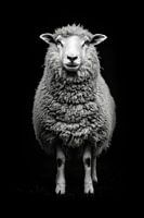 Een charmant schaap in stralend wit steekt krachtig af tegen een diepzwarte achtergrond. Met zijn vriendelijke uitstraling en rijke wol straalt het rust en gezelligheid uit. Ideaal voor de keuken of woonkamer, het brengt een vleugje landelijke flair en warmte in elke kamer.