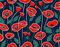 Een levendige en gestileerde afbeelding van rode klaprozen tegen een diepblauwe achtergrond. Het kunstwerk heeft vloeiende lijnen en gedurfde kleuren, waardoor een vrolijk en opvallend bloemenpatroon ontstaat. Het eenvoudige maar elegante ontwerp vangt de delicate schoonheid van klaprozen in volle bloei.