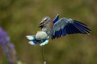 Wat een powervogel. Hoe hij zijn prooi wilt pakken op de papaverbol.