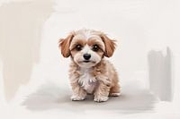 Dit schattige ontwerp toont een klein hondje met een schattig, pluizig uiterlijk en grote, onschuldige ogen. De zachte tinten van zijn vacht – een mengeling van bruin en wit – komen prachtig naar voren tegen de lichte, minimalistische achtergrond. Het ontwerp straalt rust en tederheid uit, wat het perfect maakt voor interieurs die een vleugje warmte en zachtheid kunnen gebruiken. Dit realistische kunstwerk zou ideaal zijn voor in de woonkamer of hal, waar het een glimlach op het gezicht van elke bezoeker kan toveren. Door de precieze details en het levensechte karakter is het een echte eyecatcher, perfect voor dierenliefhebbers en kunstverzamelaars.
