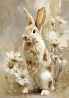 Schattig konijn met madeliefjes - olieverfschilderij van Niklas Maximilian