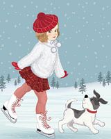 Koop Schattig meisje op de schaats met een hond van Atelier Liesjes op canvas, aluminium dibond, (ingelijste) fotoprint, behang en ArtFrame, op maat geprint in Fine-Art kwaliteit.