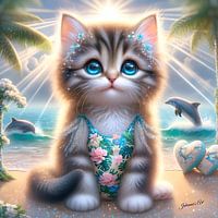 Over ‘Schattig poesje op een tropisch strand 2’ van Johannas Art Creations