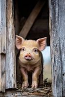 Koop de foto Schattig varkentje in schuur van Imperial Art House als print op canvas, aluminium dibond, (ingelijste) fotoprint, behang en ArtFrame. Voor jou op maat geprint in Fine-Art kwaliteit.