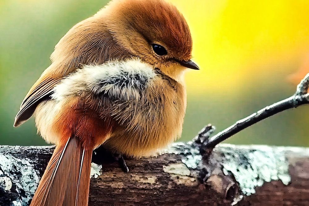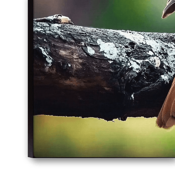 Dit ontwerp brengt de schoonheid van de natuur perfect in beeld. Een schattig vogeltje zit vredig op een met mos begroeide tak, omringd door warme herfstkleuren. De fijne details in de veren en het zachte bokeh-effect in de achtergrond geven het ontwerp een serene en uitnodigende uitstraling. Dit beeld is ideaal als decor voor elke ruimte die rust en harmonie moet uitstralen, zoals een slaapkamer of kantoor. Het benadrukt de subtiele kleurenpracht van de herfst en biedt een kalmerend effect, perfect voor natuurliefhebbers en kunstverzamelaars.