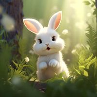 Lief wit konijntje in natuurlijke omgeving. Super voor in de kinderkamer. Om heerlijk bij weg te dromen...