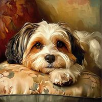 Breng warmte en gezelligheid in je interieur met dit prachtige, portret van een Havanezer. Dit unieke kunstwerk vangt de essentie van dit schattige hondje: zijn zachte vacht, glinsterende ogen en onmiskenbare dromerige uitstraling. De warme achtergrond geeft het portret een levendige en eigentijdse uitstraling die perfect past in elk…