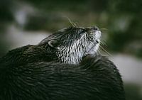 Deze sfeervolle close-up foto toont een schattige otter met een indrukwekkende scherptediepte. De scherpe focus op de otter brengt zijn charmante en speelse karakter naar voren, terwijl de achtergrond zacht en onscherp blijft. De foto nodigt de kijker uit om de schoonheid en het unieke karakter van dit dier te bewonderen. Perfect voor liefhebbers van natuurfotografie en dierenportretten.