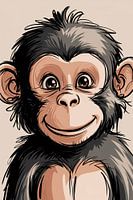 Deze schattige digitale illustratie van een glimlachende aap straalt vrolijkheid en warmte uit. De eenvoudige, maar gedetailleerde lijnen benadrukken de speelse charme van het dier, terwijl de monochrome kleuren het ontwerp een tijdloze uitstraling geven. Het vriendelijke gezicht en de grote ogen van de aap trekken meteen de aandacht, waardoor het perfect is voor ruimtes die een vleugje speelsheid nodig hebben. Denk bijvoorbeeld aan een kinderkamer, kantoor of zelfs een creatieve hobbykamer. Dit kunstwerk is ideaal voor liefhebbers van dieren en vrolijke, toegankelijke kunstwerken die een positieve sfeer willen creëren. Een leuke en vriendelijke toevoeging aan elk interieur!