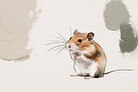 Dit charmante ontwerp toont een schattige hamster, subtiel weergegeven in een minimalistische stijl. Het diertje zit in een eenvoudige, moderne omgeving, waarbij de zachte kleuren en abstracte achtergrond het geheel een rustige en serene uitstraling geven. Dit kunstwerk is perfect voor liefhebbers van dieren en minimalistisch design. De combinatie van zachte aardetinten en verfijnde lijnen maakt dit een veelzijdig stuk dat in verschillende ruimtes kan worden opgehangen, zoals een slaapkamer, kantoor of kinderkamer. Het ontwerp straalt een zachte sfeer uit en past goed in moderne interieurs, waar het een vleugje speelsheid en charme kan toevoegen zonder overweldigend te zijn.