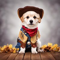 Je zult zeker grijnzen als je deze foto ziet van een schattige hond verkleed als cowboy! Het'is de ideale manier om wat plezier toe te voegen aan elke omgeving.