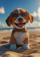 Als het op stijl aankomt, is deze pup een echte trendsetter! Met zijn zonnebril op en vol zelfvertrouwen weet deze coole hond hoofden te doen omdraaien en harten te doen smelten.