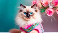 Koop de illustratie Schattige kat met jurk van Mustafa Kurnaz op canvas, aluminium dibond, (ingelijste) fotoprint, behang en ArtFrame, op maat geprint in Fine-Art kwaliteit.