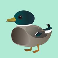 Een digitale vector tekening van een wilde eend. Het is een mannetje. Het model is die van een rubber bad eendje, maar dan in de natuurlijke kleurstelling. Super schattig!