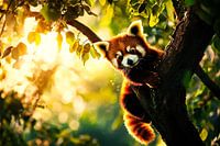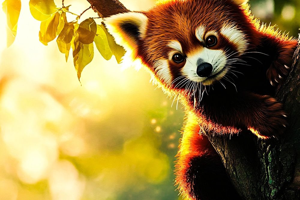 Dit prachtige ontwerp toont een speelse rode panda, hoog in een boom genesteld tegen een achtergrond van zonovergoten bladeren. De warme kleuren en het oog voor detail maken dit een opvallend en levendig kunstwerk dat perfect past in elke ruimte. Het ontwerp straalt een combinatie van rust en energie uit, ideaal om sfeer en een natuurlijke uitstraling toe te voegen aan uw interieur. Deze charmante rode panda brengt een glimlach op ieders gezicht!