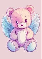 Dit betoverende motief toont een schattige teddybeer met grote, gedetailleerde engelenvleugels. De beer heeft een zachte, donzige vacht in zachte tinten roze en paars, terwijl zijn vleugels glanzen in een zachte tint blauw. Zijn grote, glanzende ogen geven hem een liefdevolle en onschuldige uitdrukking. De achtergrond is subtiel…