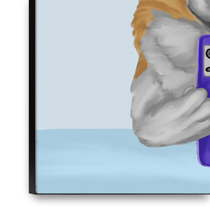 Koop de illustratie Schattige welsh corgi met telefoon van Antiope33 op canvas, aluminium dibond, (ingelijste) fotoprint, behang en ArtFrame, op maat geprint in Fine-Art kwaliteit.