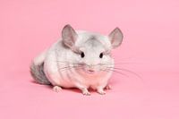 Cute white chinchilla on a pink background looking at the camera