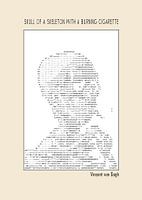 Verschillende coderingen en matrices zijn gerangschikt in een kunstafbeelding: Schedel van een skelet met een brandende sigaret - Vincent van Gogh (Ascii-kunst)