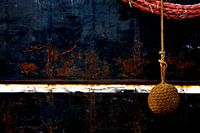 Roestige scheepswand met stootkussen